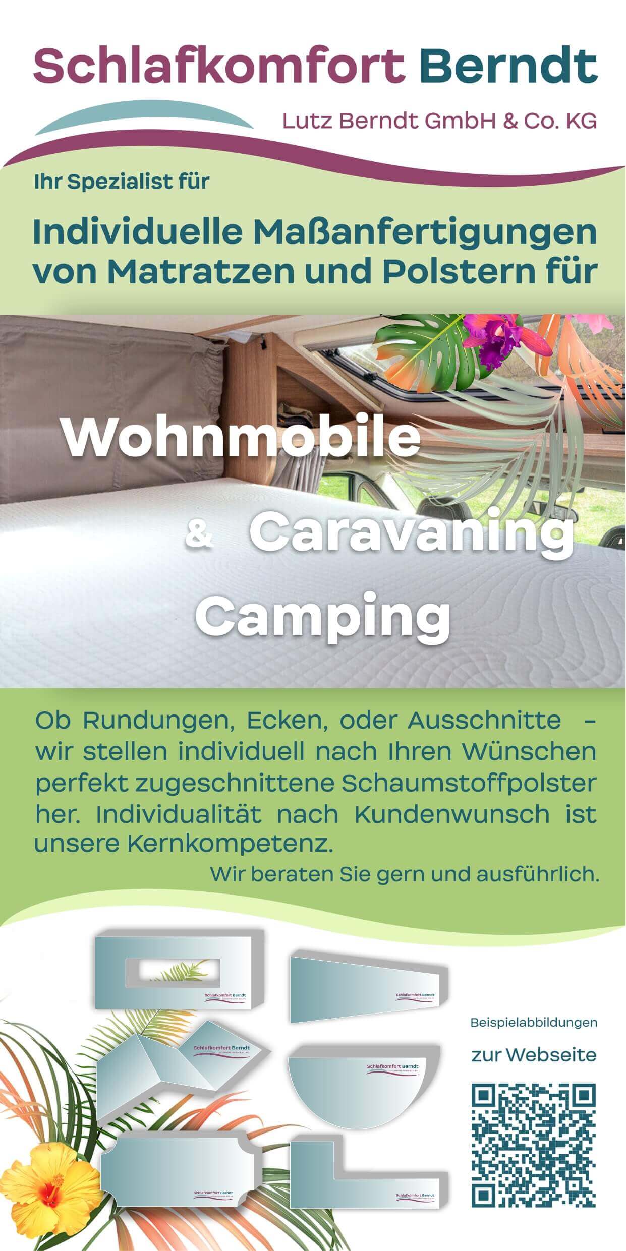 Ob Campingpolster, Caravanpolster, Wohnmobilpolster oder Schlafcouch - individuell nach Ihren Wünschen stellen wir passend zugeschnittene Schaumstoffpolster her.